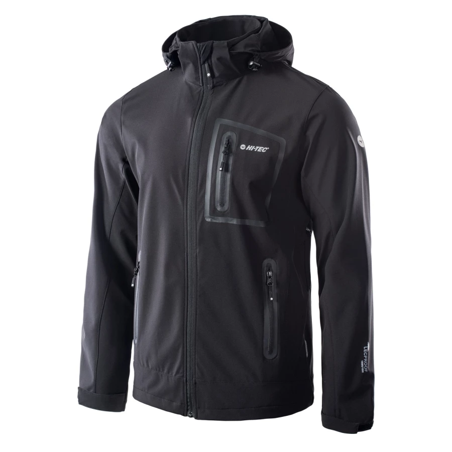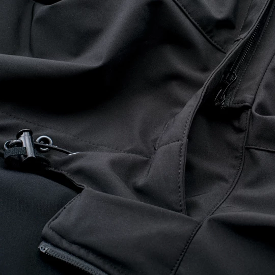 materiał: 96% poliester, 4% elastan podszewka: 100% poliester odporność na działanie wody: 10 000 mm H2O oddychalność: 1000 g H2O / m2 wentylacja pod pachami odpinany kaptur mankiety regulowane rzepami 2 boczne kieszenie zamykane na zamek kieszeń na piersi zapinana na zamek