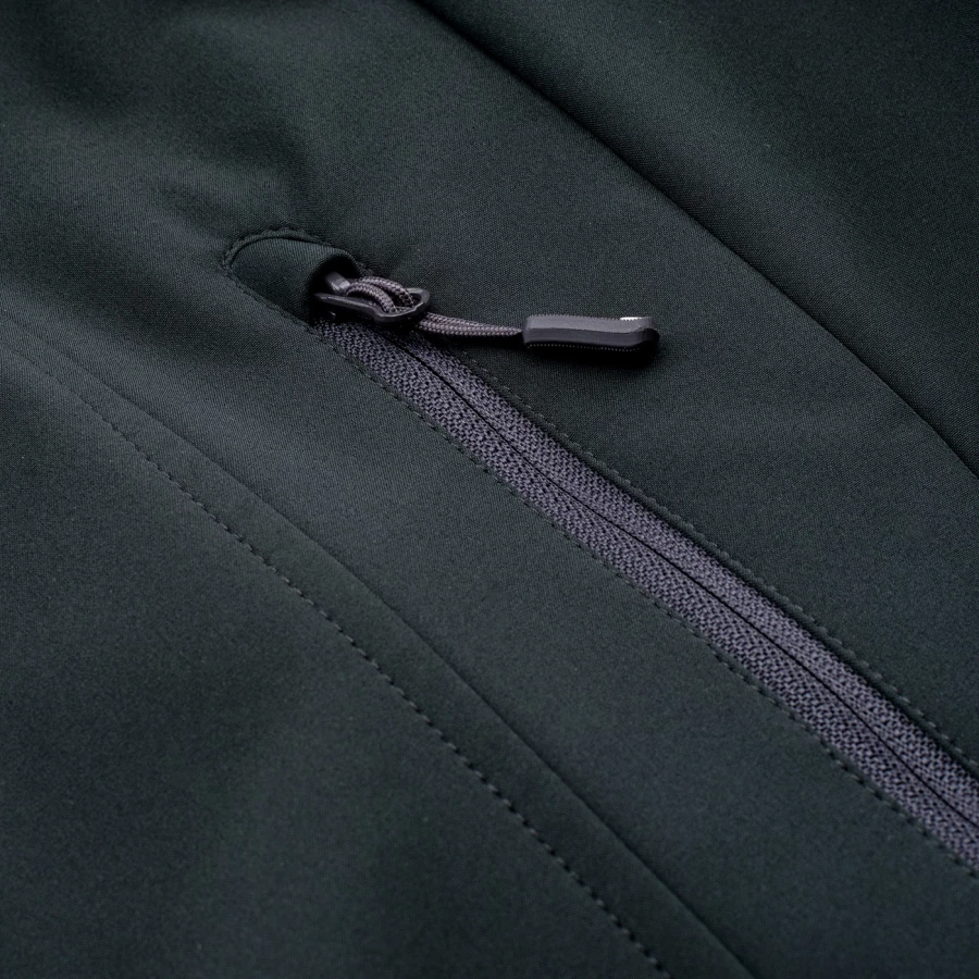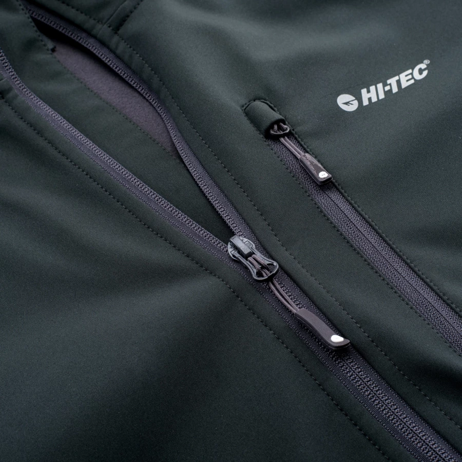 Materiał: Softshell: 96% poliester, 4% elastan; podszycie: 100% poliester; wodoodporność: 8000 mm H20; oddychalność: 3000 g H2O/m2; odblaskowe elementy; polarowe podszycie; głęboki kaptur; boczne kieszenie.
