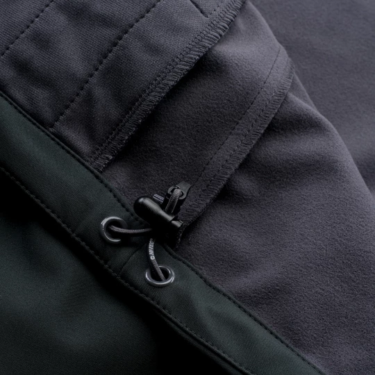 Materiał: Softshell: 96% poliester, 4% elastan; podszycie: 100% poliester; wodoodporność: 8000 mm H20; oddychalność: 3000 g H2O/m2; odblaskowe elementy; polarowe podszycie; głęboki kaptur; boczne kieszenie.