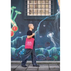 Torba wykonana w recyklingowanej bawełny (70%) i w poliestru (30% rPET) (150 g/m²), z uchwytami o długości 65 cm. Bawełna z recyklingu jest jednobarwna i niebarwiona. Surowiec jest używany w swojej oryginalnej formie i kolorze, bez użycia barwiących lub wybielających chemikaliów, co przyczynia się do zmniejszenia wpływu na środowisko. Jednolity kolor uzyskuje się poprzez wybór przędzy z recyklingu o tym samym odcieniu, mogą pojawić się z tego powodu pewne różnice kolorystyczne. 380 x 420 mm