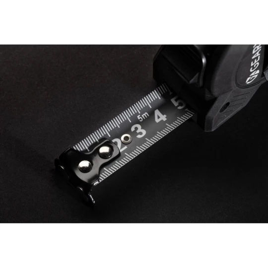 Miara 5 m, przycisk blokady, czarna taśma o szerokości 19 mm z dwoma magnesami na zaczepie, 2 prędkości zwijania, taśma wykonana z trwałego włókna węglowego, w pudełku podarunkowym, ślad węglowy produktu: 1,94 kg CO2
