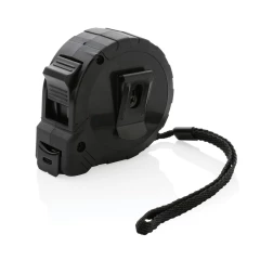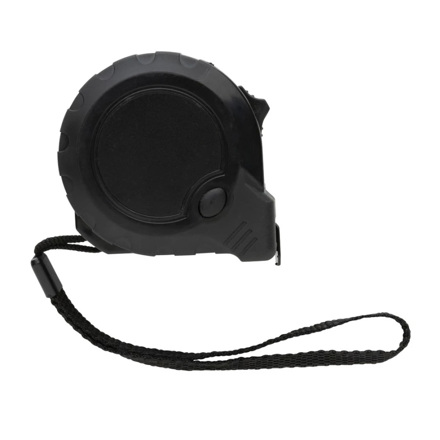 Miara 5 m, taśma o szerokości 19 mm z haczykiem, przycisk blokady, wykonana z ABS pochodzącego z recyklingu z certyfikatem RCS (Recycled Claim Standard) który gwarantuje, że wykorzystane materiały pochodzą z recyklingu, całkowita zawartość materiału z recyklingu obliczona w oparciu o wagę całkowitą przedmiotu: 15%, uchwyt z TPR, w pudełku z papieru kraftowego z certyfikatem