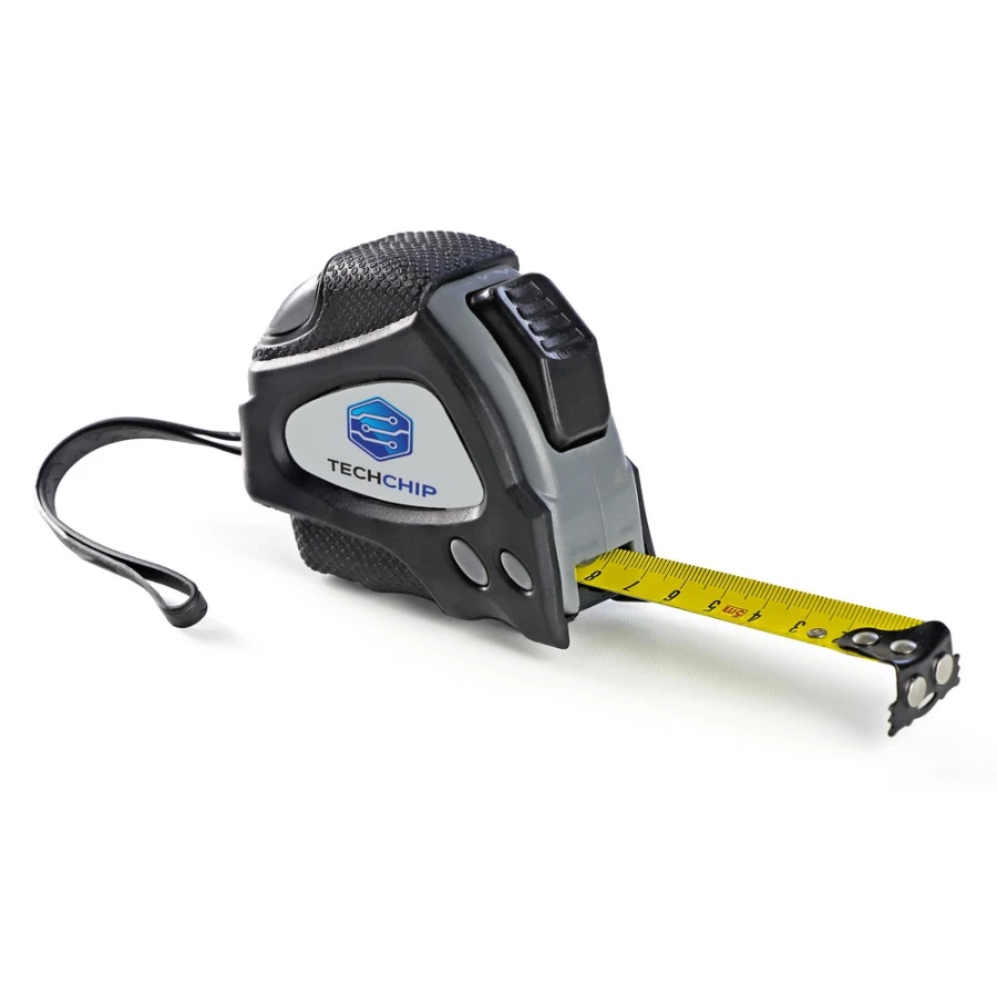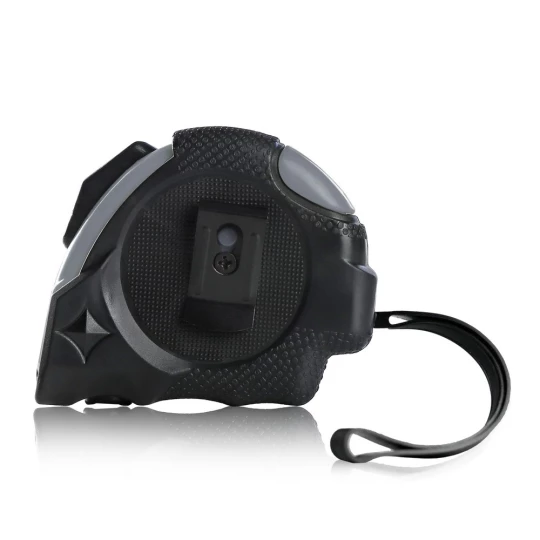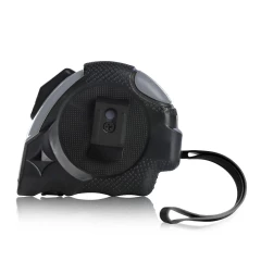 Miara 5 m z uchwytem ułatwiającym noszenie oraz dodatkowym klipem umożliwiającym przyczepienie np. do paska, na końcu znajduje się magnetyczny zaczep ułatwiający korzystanie z miary, produkt wykonany z metalu i plastiku
