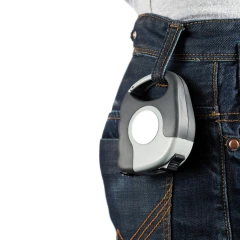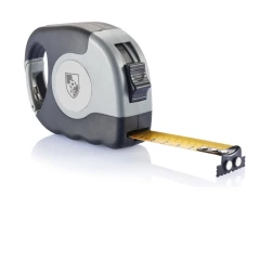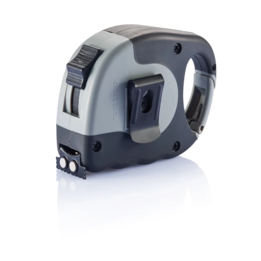 Miara 5 m z karabińczykiem, przycisk samozamykający, żółta taśma o szerokości 19 mm z dwoma silnymi magnesami na zaczepie, obudowa wykonana z ABS, uchwyt z TPR, posiada klip do paska, na obudowie matowa naklejka z PVC pod nadruk, wzór zastrzeżony®, ślad węglowy produktu: 1,38 kg CO2