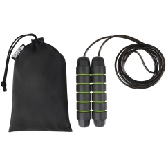 Profesjonalna skakanka dla dorosłych z ergonomicznie ukształtowanymi uchwytami z miękkiej pianki, zapewniającymi pewny i wygodny chwyt podczas treningu. Długość liny wynosi 310 cm, co pozwala na łatwe skakanie dorosłym o wzroście do 195 cm. Lina ma regulowaną długość i wbudowane wysokiej jakości, obracane o 360°, szybkie łożysko kulkowe, które zapewnia płynny obrót bez wysiłku, zapobiegając plątaniu się liny. Dostarczana z woreczkiem do przechowywania (21 x 14 cm) wykonanym z plastiku PET z recyklingu, który oferuje doskonałą powierzchnię do nadruku logo.