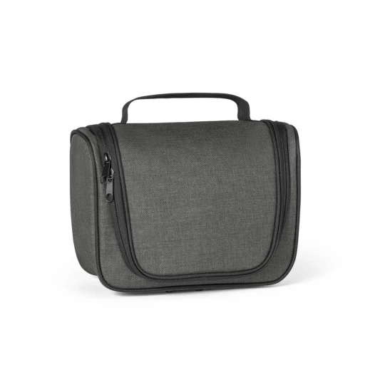 Kosmetyczka wykonana z 600D o wysokiej gęstości. Główna komora zapinana na dwukierunkowy zamek błyskawiczny i podszewka z 210D. Zawiera kilka wewnętrznych kieszeni i haczyk na górze do zawieszenia. 230 x 180 x 105 mm