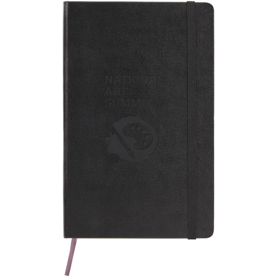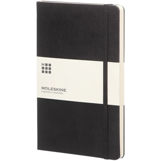 Moleskine Classic large hard cover notebook in bestselling black, plus a range of stylish vibrant colours. Features rounded corners, elasticated closure and ribbon book marker. Expandable pocket in cardboard and cloth to inside back cover. Contains 240 ivory-coloured dotted pages.