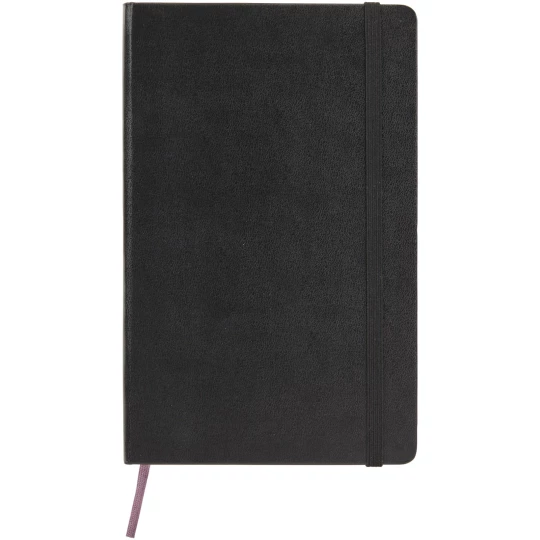 The Moleskine Classic large (13x21cm) hard cover notebook features a cardboard bound cover with rounded corners, acid free paper, a ribbon bookmark and elastic closure. On the first page in case of loss notice with space to jot down a reward for the finder. Attached to the back cover an expandable inner pocket that contains the Moleskine history. The pocket can be used for loose papers and notes. Contains 240 ivory-coloured ruled pages. Available in a wide range of stylish vibrant colours.