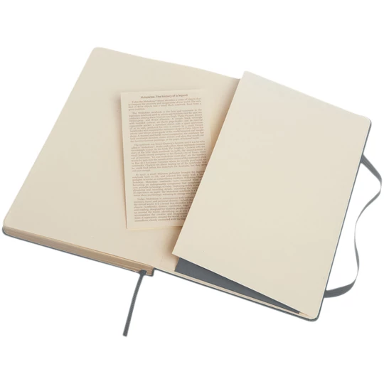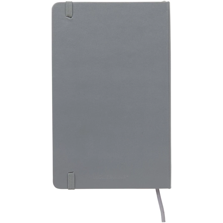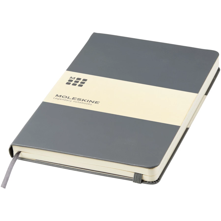 The Moleskine Classic large (13x21cm) hard cover notebook features a cardboard bound cover with rounded corners, acid free paper, a ribbon bookmark and elastic closure. On the first page in case of loss notice with space to jot down a reward for the finder. Attached to the back cover an expandable inner pocket that contains the Moleskine history. The pocket can be used for loose papers and notes. Contains 240 ivory-coloured ruled pages. Available in a wide range of stylish vibrant colours.