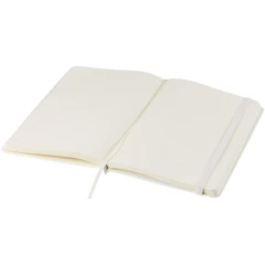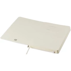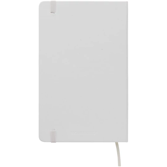 The Moleskine Classic large (13x21cm) hard cover notebook features a cardboard bound cover with rounded corners, acid free paper, a ribbon bookmark and elastic closure. On the first page in case of loss notice with space to jot down a reward for the finder. Attached to the back cover an expandable inner pocket that contains the Moleskine history. The pocket can be used for loose papers and notes. Contains 240 ivory-coloured ruled pages. Available in a wide range of stylish vibrant colours.