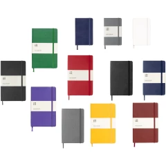 The Moleskine Classic large (13x21cm) hard cover notebook features a cardboard bound cover with rounded corners, acid free paper, a ribbon bookmark and elastic closure. On the first page in case of loss notice with space to jot down a reward for the finder. Attached to the back cover an expandable inner pocket that contains the Moleskine history. The pocket can be used for loose papers and notes. Contains 240 ivory-coloured ruled pages. Available in a wide range of stylish vibrant colours.