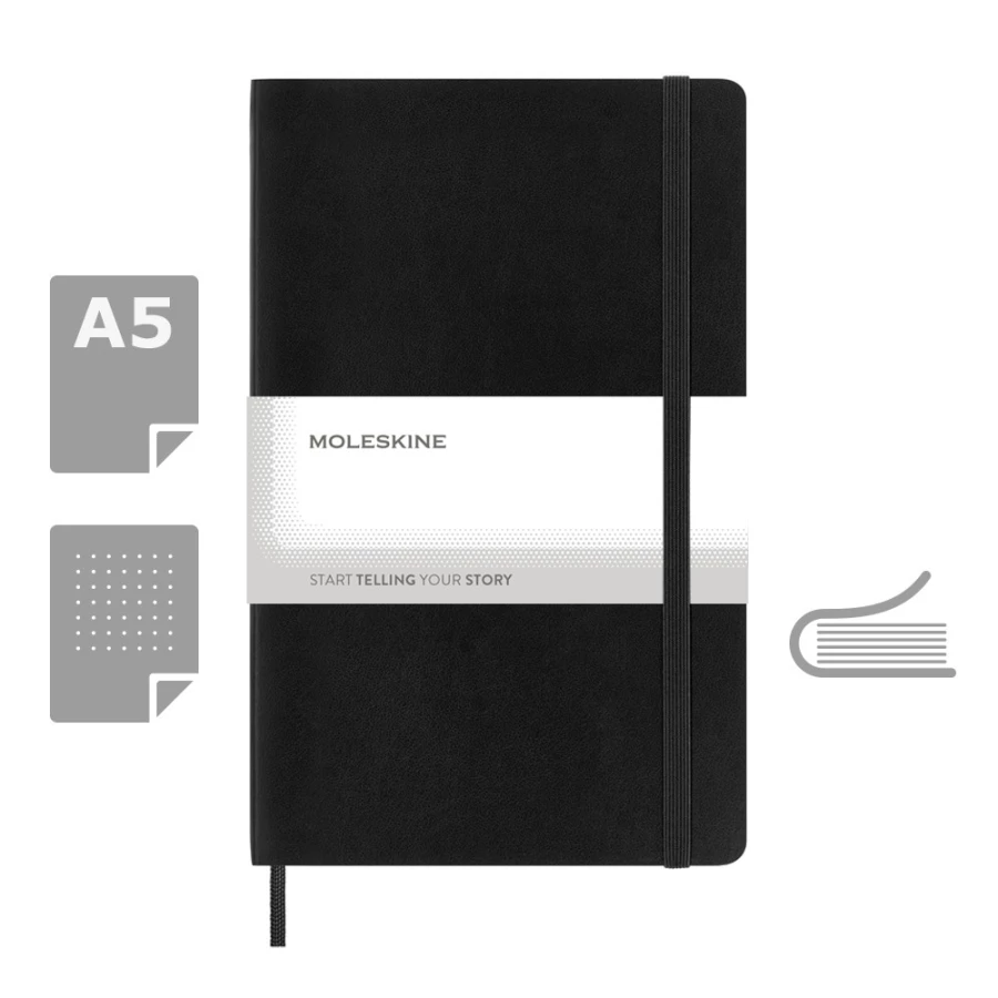 Notatnik duży (ok. A5, large) MOLESKINE, miękka okładka, 192 kropkowane strony, kieszeń wewnętrzna, zakładka i elastyczna opaska do zamykania