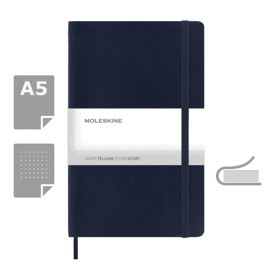 Notatnik duży (ok. A5, large) MOLESKINE, miękka okładka, 192 kropkowane strony, kieszeń wewnętrzna, zakładka i elastyczna opaska do zamykania