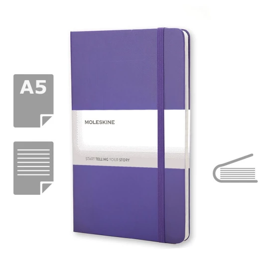 Notatnik duży (ok. A5, large) MOLESKINE, 240 stron w linie, twarda okładka, kieszeń wewnętrzna, zakładka i elastyczna opaska do zamykania