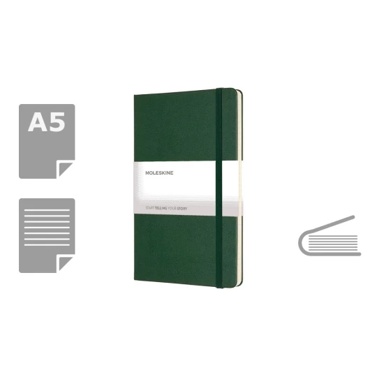 Notatnik duży (ok. A5, large) MOLESKINE, 240 stron w linie, twarda okładka, kieszeń wewnętrzna, zakładka i elastyczna opaska do zamykania