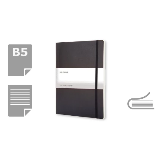 Notatnik XL (ok. B5) MOLESKINE, miękka okładka, 192 strony w linie, kieszeń wewnętrzna, zakładka i elastyczna opaska do zamykania