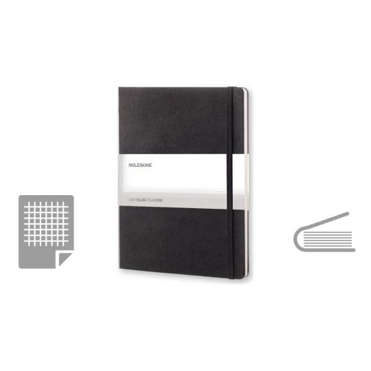Notatnik XL (ok. B5) MOLESKINE, 192 strony w kratkę, twarda okładka, kieszeń wewnętrzna, zakładka i elastyczna opaska do zamykania