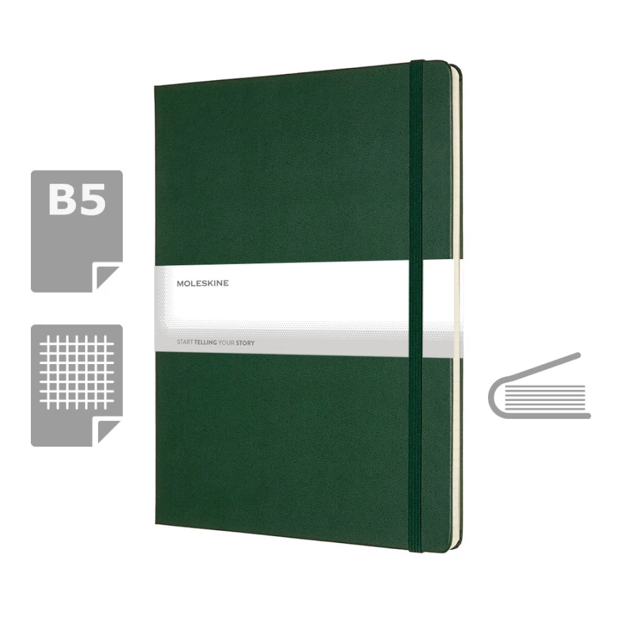 Notatnik XL (ok. B5) MOLESKINE, 192 strony w kratkę, twarda okładka, kieszeń wewnętrzna, zakładka i elastyczna opaska do zamykania