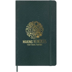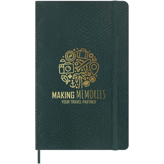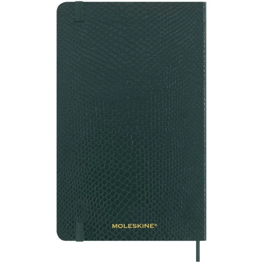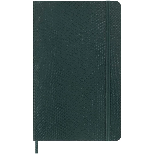 Duży notatnik Vegea Boa ma miękką okładkę z motywem wegańskiego pytona, zaokrąglone rogi, elastyczne zamknięcie i pasującą zakładkę ze wstążki. Notatniki zawierają bezkwasowy papier w kolorze kości słoniowej i rozszerzalną kieszeń wewnętrzną z historią Moleskine. Sprzedawany w ozdobnym pudełku upominkowym.