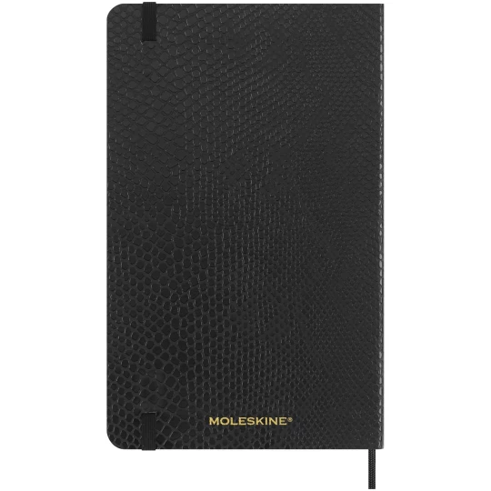 Duży notatnik Vegea Boa ma miękką okładkę z motywem wegańskiego pytona, zaokrąglone rogi, elastyczne zamknięcie i pasującą zakładkę ze wstążki. Notatniki zawierają bezkwasowy papier w kolorze kości słoniowej i rozszerzalną kieszeń wewnętrzną z historią Moleskine. Sprzedawany w ozdobnym pudełku upominkowym.