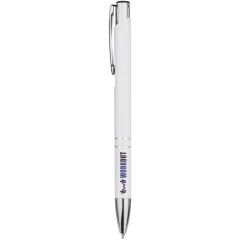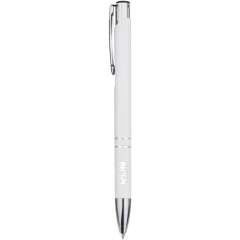 Długopis wykonany z aluminium z recyklingu z lakierowanym wykończeniem, połyskiem i wyrazistymi chromowanymi detalami. Aluminium z recyklingu ogranicza ilość odpadów na wysypiskach śmieci i pomaga chronić zasoby naturalne w celu zmniejszenia emisji gazów cieplarnianych. Kolor tuszu: Niebieski. Żywotność: 1000 metrów. Rozmiar stalówki: 1,00 mm.