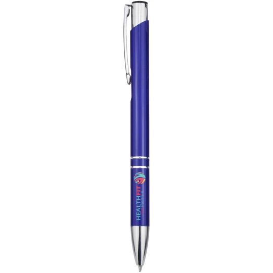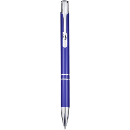 Długopis wykonany z aluminium z recyklingu z lakierowanym wykończeniem, połyskiem i wyrazistymi chromowanymi detalami. Aluminium z recyklingu ogranicza ilość odpadów na wysypiskach śmieci i pomaga chronić zasoby naturalne w celu zmniejszenia emisji gazów cieplarnianych. Kolor tuszu: Niebieski. Żywotność: 1000 metrów. Rozmiar stalówki: 1,00 mm.