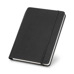 Notes A5 z twardą okładką z PU. Posiada 192 strony w linie (70 g/m²), wykonany z materiałów z certyfikatem FSC™ i innych kontrolowanych materiałów, uchwyt na długopis (nie jest dołączony) i gumkę. Dostarczany w etui non-woven. 140 x 210 mm