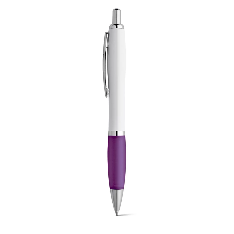 Biały długopis wykonany z ABS z metalowym klipem i kolorowym elementem z antypoślizgiem . Dostępny w szerokiej gamie kolorów. Niebieski tusz. ø12 x 140 mm