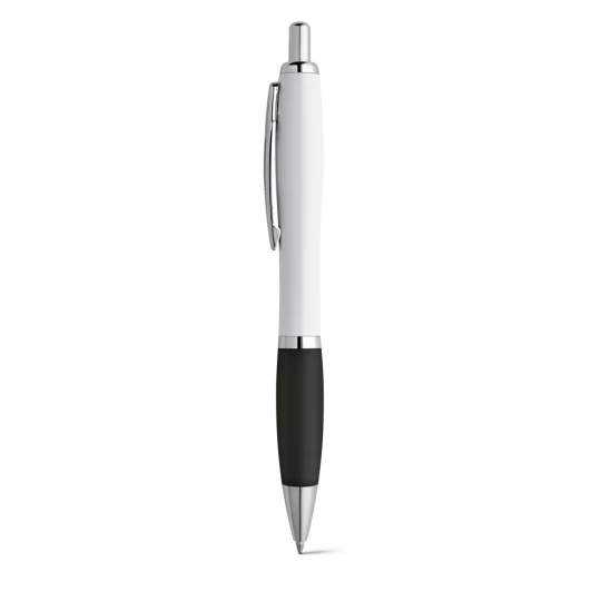 Biały długopis wykonany z ABS z metalowym klipem i kolorowym elementem z antypoślizgiem . Dostępny w szerokiej gamie kolorów. Niebieski tusz. ø12 x 140 mm