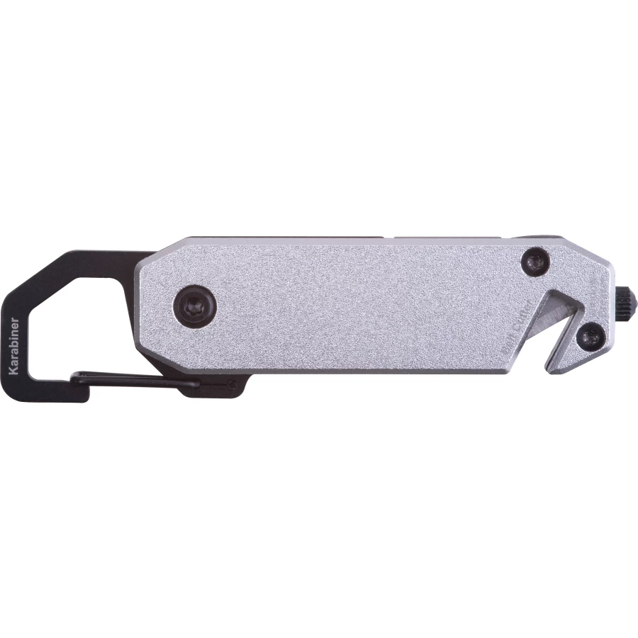 Multitool z aluminiową obudową i narzędziami ze stali nierdzewnej. Wyposażony w klucze płaskie 3–8 mm, śrubokręt krzyżakowy, śrubokręt płaski, karabińczyk, otwieracz do butelek, przecinak do pasów bezpieczeństwa oraz młotek bezpieczeństwa do rozbijania szyb.
