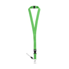 Smycz poliestrowa z metalowym karabińczykiem, odpinaną klamrą, paskiem do telefonu komórkowego i blokadą bezpieczeństwa. 20 x 510 mm
