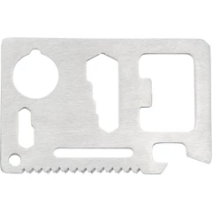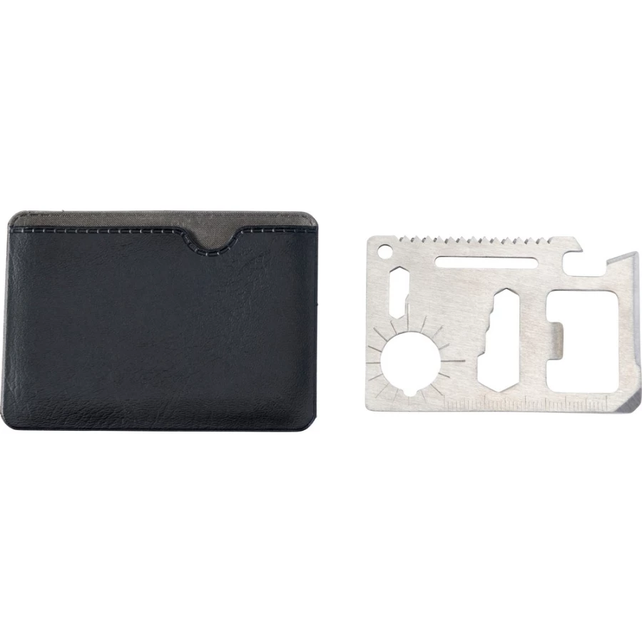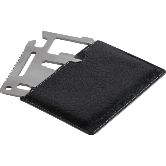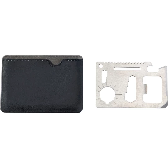 Narzędzie wielofunkcyjne, 11 funkcji: nóż, otwieracz do puszek, klucz motylkowy, piła, śrubokręt, otwieracz do butelek, linijka i klucze w różnych rozmiarach, w pokrowcu