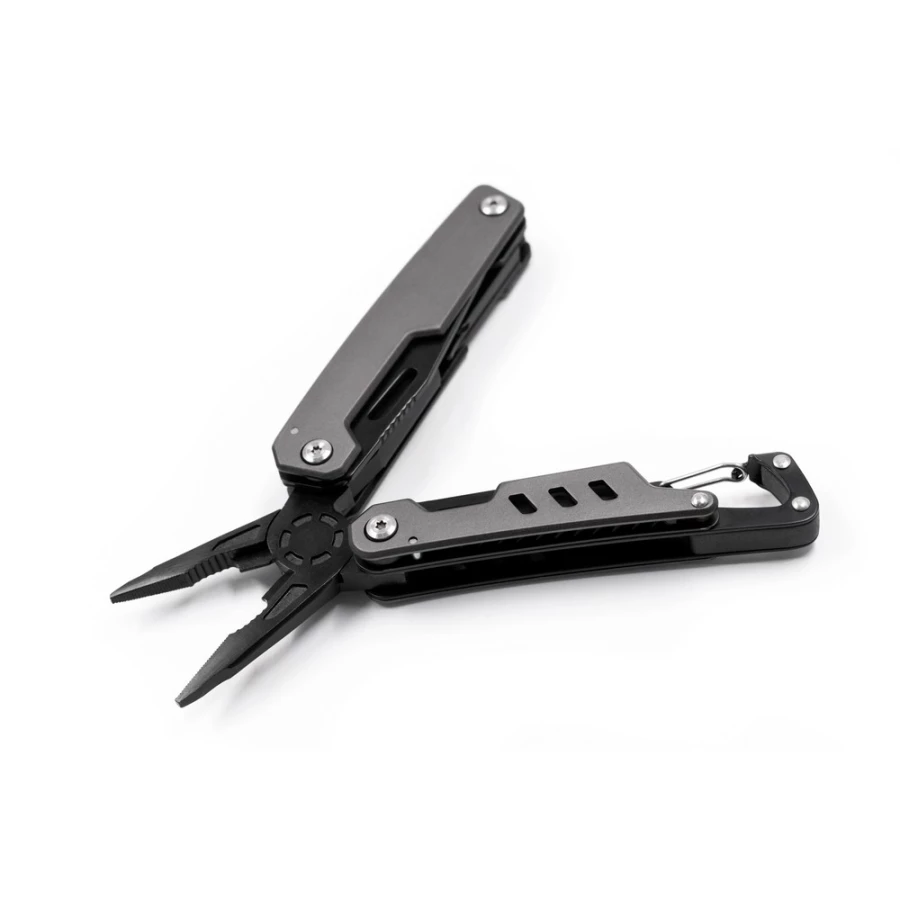 Narzędzie wielofunkcyjne 11 funkcji BrandCharger Ranger, w czarnym etui, otwieracz do butelek i puszek, śrubokręt płaski i krzyżak, przecinak do drutu, nóż wielofunkcyjny, szczypce, piła i pilnik do drewna/metalu, klucz do szprych rowerowych, przecinak do kabli i drutu, linijka metryczna i calowa, zapakowany w czarne papierowe pudełko, produkt wykonany ze stali nierdzewnej i aluminium