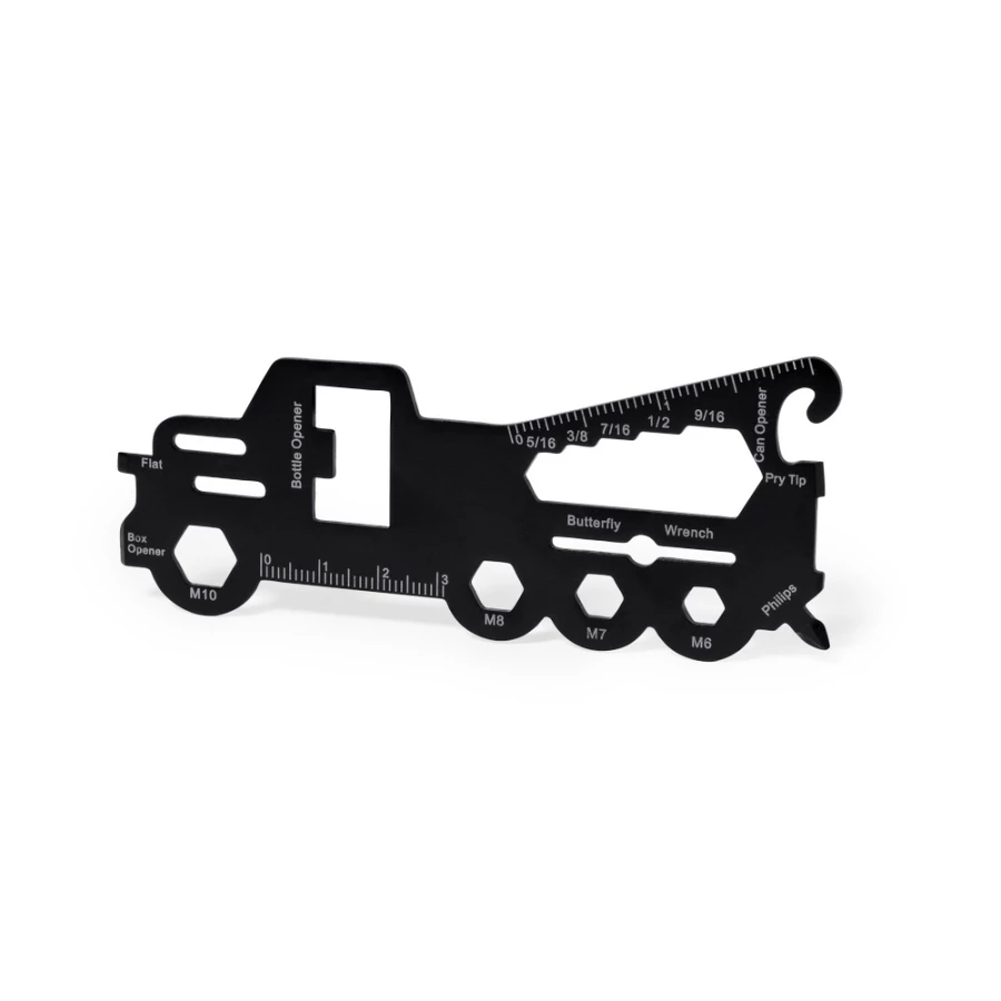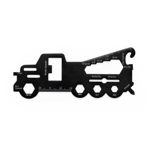 Narzędzie wielofunkcyjne "ciężarówka", 18 funkcji, śrubokręt płaski, otwieracz do pudełek, otwieracz do butelek, klucze imbusowe, klucz motylkowy, otwieracz do puszek, śrubokręt krzyżakowy, linijka