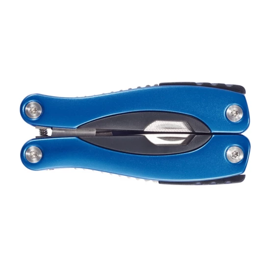 Narzędzie wielofunkcyjne, wykonane z aluminium, uchwyt z czarnymi detalami, 14 funkcji, czarny pokrowiec 600D w komplecie, ślad węglowy produktu: 2,53 kg CO2