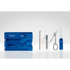 Narzędzie wielofunkcyjne Victorinox SwissCard Classic, w zestawie: nożyk do listów, pęseta, nożyczki, pilnik do paznokci, wykałaczka, długopis i stalowa szpilka, zapakowane pojedynczo w pudełko upominkowe, produkt wykonany ze stali nierdzewnej i plastiku