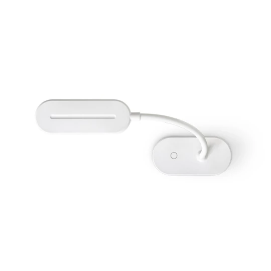 Przenośna lampka biurkowa wykonana z ABS (65% rABS) o mocy 140 lumenów z klipsem do mocowania do powierzchni. Podstawa jest antypoślizgowa, a rurka jest plastyczna w zakresie 360º, co ułatwia regulację kierunku światła. Posiada włącznik/wyłącznik i 3 poziomy jasności do wyboru. Akumulator ma pojemność 1200 mAh, co zapewnia około 30 godzin autonomii w trybie słabego oświetlenia, 7 godzin w trybie średniego oświetlenia i 3 godziny w trybie wysokiego oświetlenia. W zestawie kabel USB-C do ładowania. Dostarczana w pudełku prezentowym z papieru pakowego.Wymiary: 122 x 58 x 456 mm