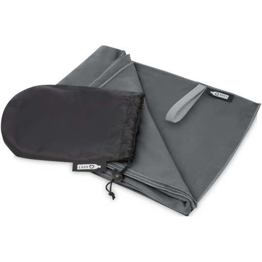 Ten ręcznik sportowy bardzo dobrze wchłania wilgoć, jest lekki i szybko schnie. Ponadto tkanina jest trwała i niezwykle miękka. Po złożeniu i zabezpieczeniu gumką ręcznik zmniejsza się do niewielkich rozmiarów, dzięki czemu nadaje się do zabrania ze sobą na siłownię, basen, czy na biwak lub wycieczkę z plecakiem. Ręcznik ma wymiary 130 x 80 cm i jest wykonany z poliamidu PET pochodzącego z recyklingu o gramaturze 200 gr/m2. Można go prać w pralce w temperaturze 40°C. Dostarczany z torbą do przechowywania (20 x 8,5 cm) wykonaną z plastiku PET z recyklingu, która oferuje doskonałą powierzchnię do nadruku logo.