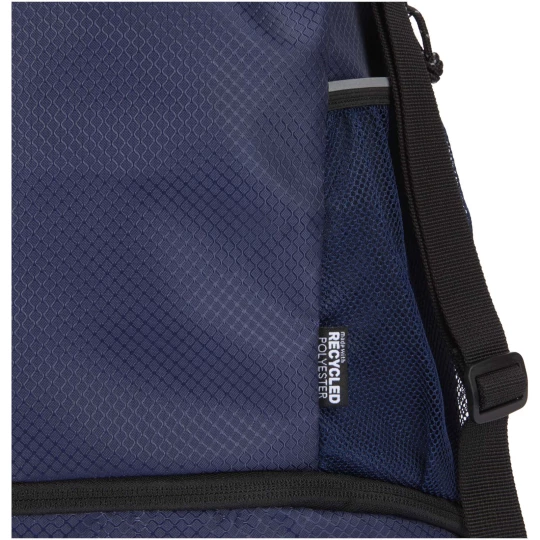 Torba sportowa ze ściągaczem Nomad jest wykonana z certyfikowanego przez GRS materiału ripstop pochodzącego z recyklingu, ma wykończenie hydrofobowe, podszewkę RPET z certyfikatem GRS i elementy odblaskowe. Przeznaczona jest dla osób prowadzących aktywny tryb życia i nadaje się do codziennych ćwiczeń i uprawiania sportu. Torba ta ma pojemną komorę główną, w której można przechowywać ubrania, ręcznik, a nawet piłkę do koszykówki. Oddzielna dolna komora pozwala oddzielić buty lub używane ubrania od innych przedmiotów. Torba posiada także dwie boczne kieszenie z siatki z odblaskowymi elementami, jedną ukrytą kieszeń zapinaną na suwak na wartościowe przedmioty oraz regulowane paski na ramiona zapewniające wygodę noszenia.