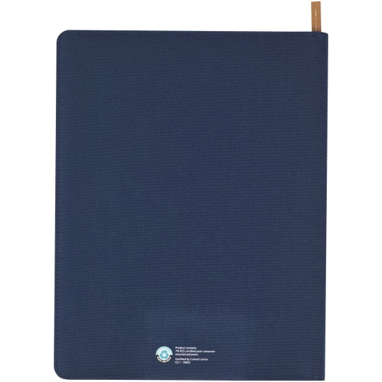 Nomumi teczka z notatnikiem do pisania częściowo wykonana z poużytkowego poliestru pochodzącego z recyklingu z certyfikatem RCS, co czyni ją bardziej zrównoważonym wyborem, ponieważ pomaga zmniejszyć zużycie pierwotnego surowca. Posiada zapięcie na zamek błyskawiczny, pętelkę na długopis, kieszeń harmonijkową i 20 białych kartek w linie z papieru z recyklingu o gramaturze 70 g/m2 pochodzącego ze zrównoważonych źródeł. Pióro i inne akcesoria widoczne na zdjęciach nie są dołączone do tego produktu.