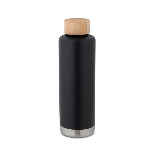 Butelka próżniowa o podwójnych ściankach ze stali nierdzewnej (36% z recyklingu), z wewnętrzną ścianą z powłoką miedzianą. Bambusowa pokrywka i silikonowa uszczelka dla dodatkowej ochrony. Pojemność do 640 ml. Posiada również powłokę proszkową, która nadaje jej większą trwałość i wytrzymałość. Dostarczany w pudełku upominkowym z papieru kraft. Ponieważ produkt jest wykonany z naturalnych materiałów, kolor produktu oraz wynik drukowania mogą się różnić w zależności od produktu. ø72 x 233 mm