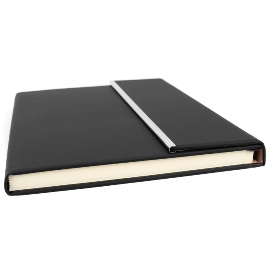 Notatnik A5 z twardą gumowaną okładką i magnetycznym zamknięciem. Posiada 192 strony w linie z niebielonego papieru.
