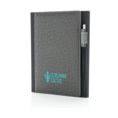Notatnik A5 (64 kremowe kartki 80 g/m2 w linie), okładka wielokrotnego użytku z magnetycznym zamknięciem i miejscem na przybory do pisania (nie dołączone), 3 miejscami na karty i 1 większą kieszenią, po zapisaniu wszystkich stron okładkę można użyć ponownie, wystarczy wymienić notatnik na nowy, ślad węglowy produktu: 1,2 kg CO2