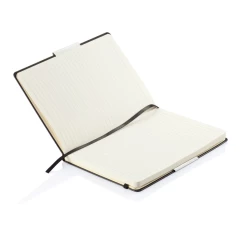 Notatnik A5 (80 kremowych kartek 80 g/m2 w linie), twarda okładka, tasiemka zakładkowa, elastyczna opaska do zamykania, obwoluta, zaokrąglone rogi, ślad węglowy produktu: 0,7 kg CO2