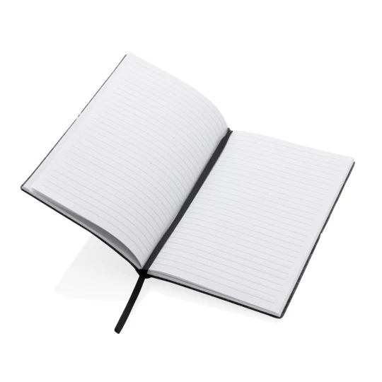 Notatnik (80 kartek 70g/m2 w linie), wykonany z materiałów pochodzących z recyklingu z certyfikatem GRS, całkowita zawartość materiałów z recyklingu obliczona na podstawie wagi całkowitej produktu: 99%, ślad węglowy produktu: 0,43 kg CO2