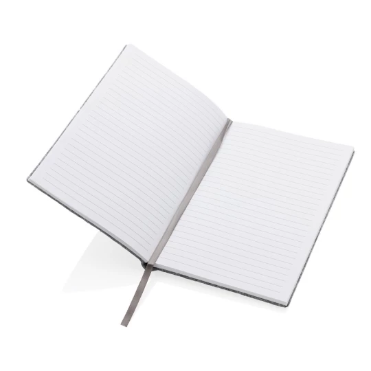 Notatnik (80 kartek 70g/m2 w linie), wykonany z materiałów pochodzących z recyklingu z certyfikatem GRS, całkowita zawartość materiałów z recyklingu obliczona na podstawie wagi całkowitej produktu: 99%, ślad węglowy produktu: 0,43 kg CO2