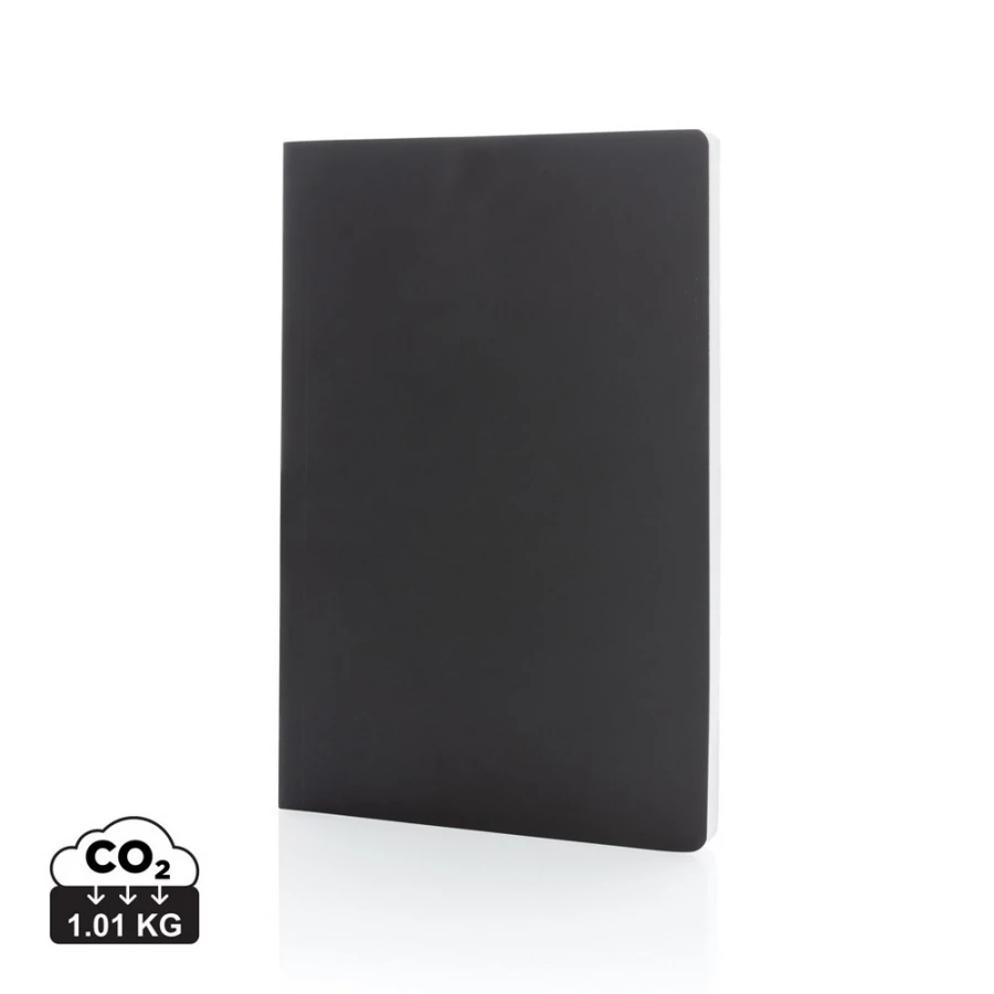 Notatnik A5 (60 białych kartek 58 g/m2 w linie), miękka okładka, notatnik wykonany z papieru kamiennego, który składa się w 80% z proszku mineralnego i 20% nietoksycznego HDPE (czysty plastik), 2% wpływów z każdego sprzedanego produktu z kolekcji Impact jest przekazywane na rzecz Water.org