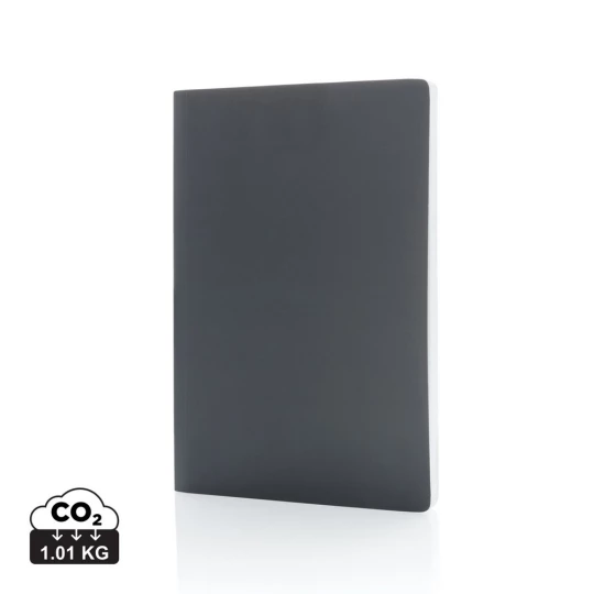 Notatnik A5 (60 białych kartek 58 g/m2 w linie), miękka okładka, notatnik wykonany z papieru kamiennego, który składa się w 80% z proszku mineralnego i 20% nietoksycznego HDPE (czysty plastik), 2% wpływów z każdego sprzedanego produktu z kolekcji Impact jest przekazywane na rzecz Water.org