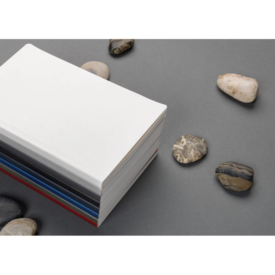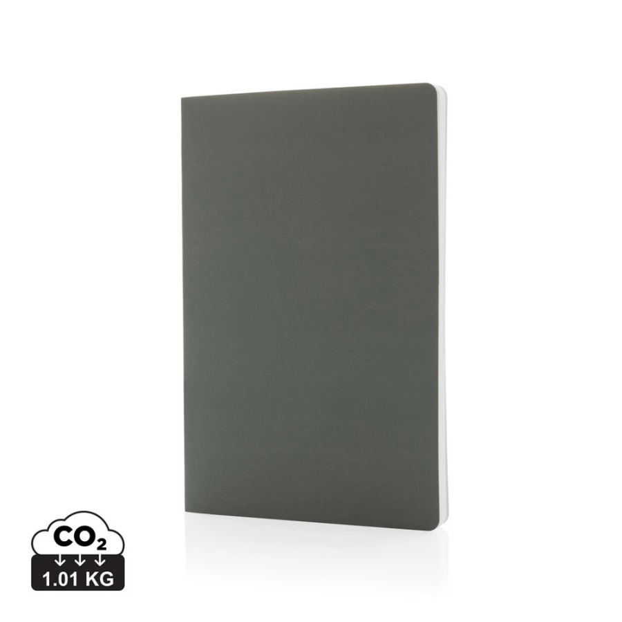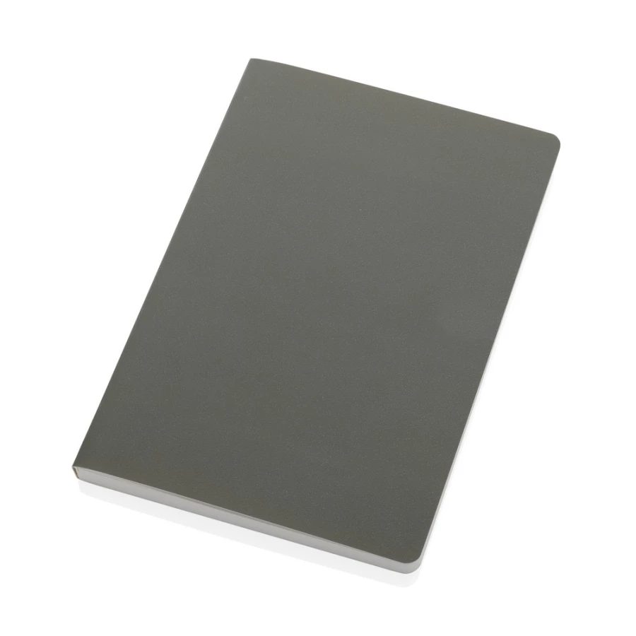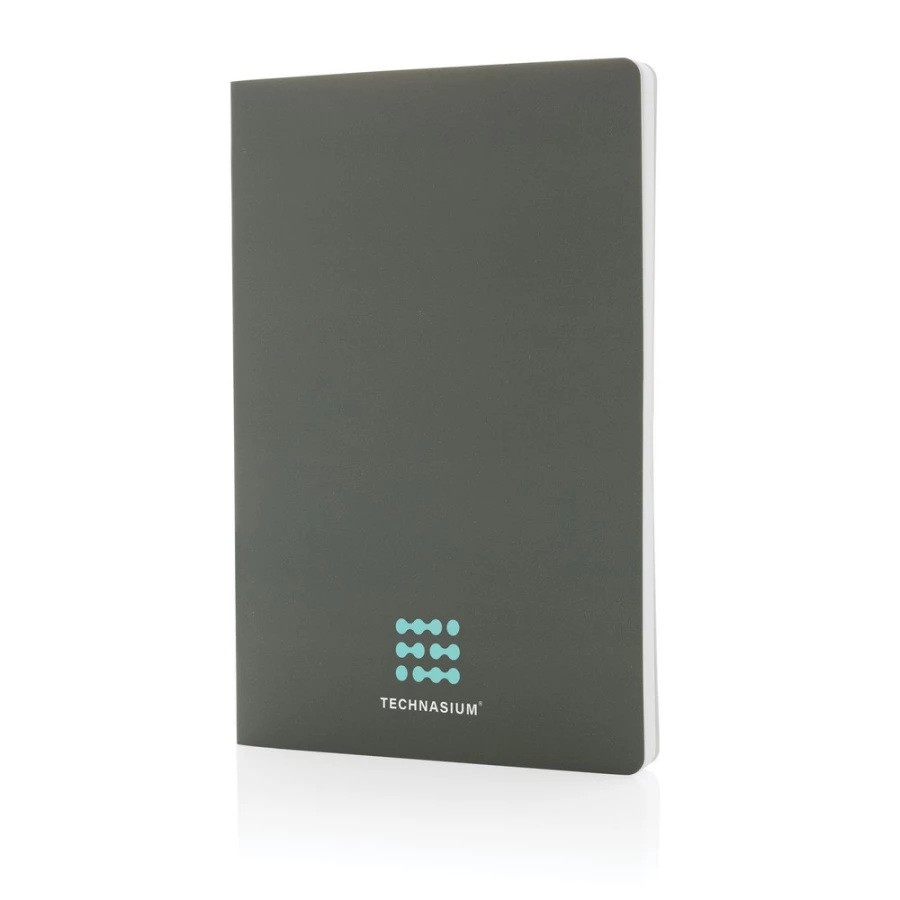 Notatnik A5 (60 białych kartek 58 g/m2 w linie), miękka okładka, notatnik wykonany z papieru kamiennego, który składa się w 80% z proszku mineralnego i 20% nietoksycznego HDPE (czysty plastik), 2% wpływów z każdego sprzedanego produktu z kolekcji Impact jest przekazywane na rzecz Water.org