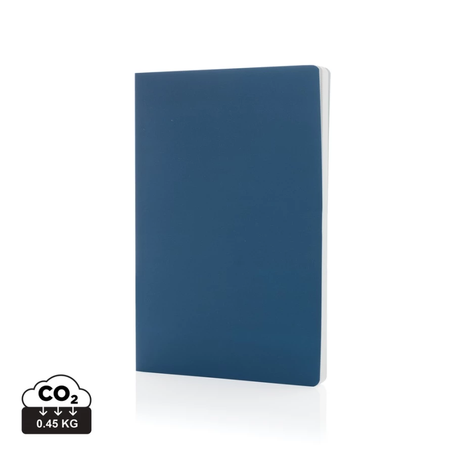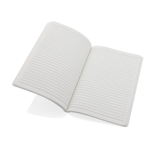 Notatnik A5 (60 białych kartek 58 g/m2 w linie), miękka okładka, notatnik wykonany z papieru kamiennego, który składa się w 80% z proszku mineralnego i 20% nietoksycznego HDPE (czysty plastik), 2% wpływów z każdego sprzedanego produktu z kolekcji Impact jest przekazywane na rzecz Water.org